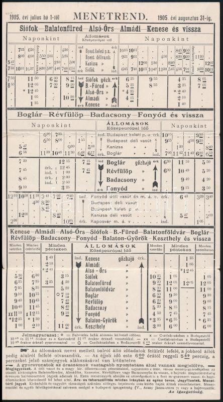Beschreibung: 1905 A Balatontavi Gőzhajózási Részvény-Társaság menetrendje, kihajthatós, litográfia, Bruchsteiner és Fia műintézete, szép állapotban, 24x13 cm