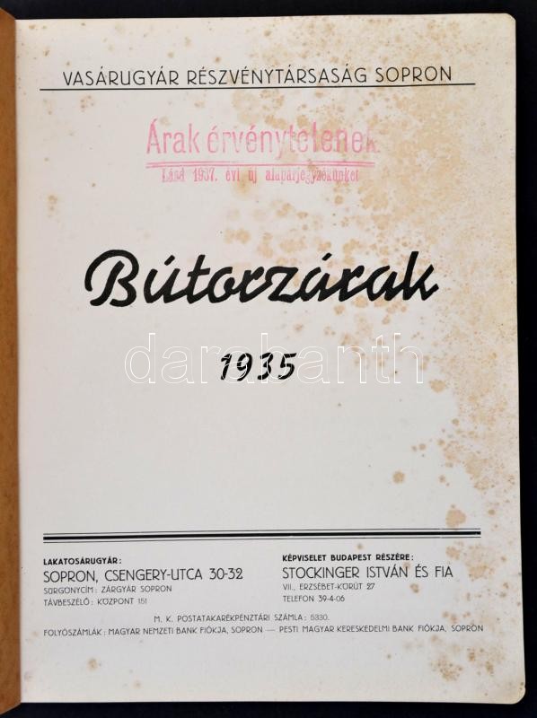 1935 Bútorzárak. Vasárugyár Rt. Sopron. Sopron, Röttig-Romwalter Nyomd... https://www.darabanth.com/de/318-Fernauktion/318.0/Andere-Sammelgebiete/Drucksachen~29/1935-Butorzarak-Vasarugyar-Rt-Sopron-Sopron-Rottig-Romwalter-Nyomda-ny-foltos-31-p~II1757214