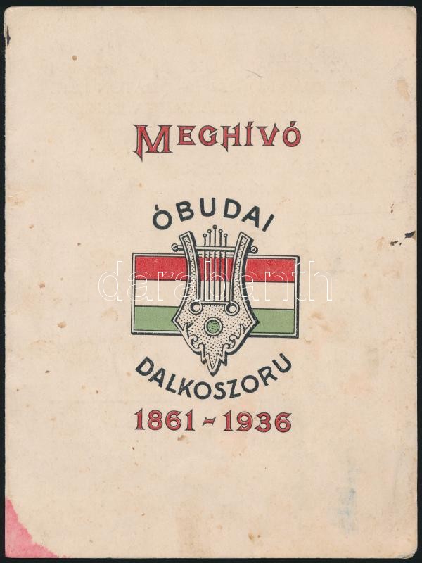 1936 Bp., Meghívó az "Óbudai Dalkoszorú" farsangi báljára, f... https://www.darabanth.com/de/318-Fernauktion/318.0/Andere-Sammelgebiete/Drucksachen~29/1936-Bp-Meghivo-az-Obudai-Dalkoszoru-farsangi-baljara-foltos~II1754826