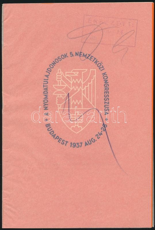 1937 Bp., A Nyomdatulajdonosok 5. Nemzetközi Kongresszusa meghívó és p... https://www.darabanth.com/de/318-Fernauktion/318.0/Andere-Sammelgebiete/Drucksachen~29/1937-Bp-A-Nyomdatulajdonosok-5-Nemzetkozi-Kongresszusa-meghivo-es-programfuzet~II1755380