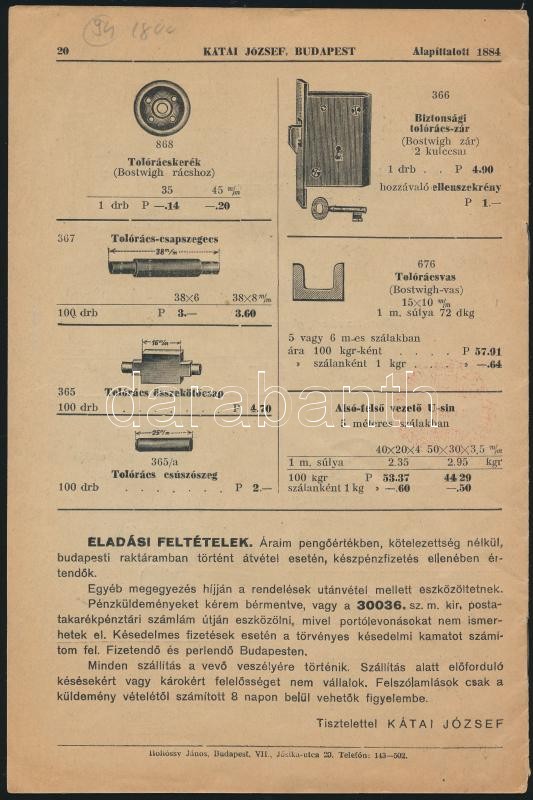 1938 Bp. VI., Kátai József tűzhely, fémveret, lakásfelszerelés üzletén... https://www.darabanth.com/de/318-Fernauktion/318.0/Andere-Sammelgebiete/Drucksachen~29/1938-Bp-VI-Katai-Jozsef-tuzhely-femveret-lakasfelszereles-uzletenek-kepes-arjegyzeke~II1754944