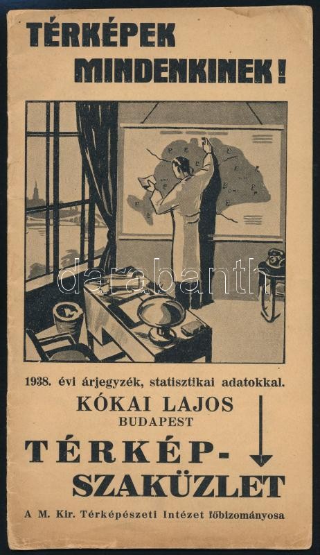 1938 Kókai Lajos térkép-szaküzletének árjegyzéke, kissé szakadt borító... https://www.darabanth.com/de/318-Fernauktion/318.0/Andere-Sammelgebiete/Drucksachen~29/1938-Kokai-Lajos-terkep-szakuzletenek-arjegyzeke-kisse-szakadt-boritoval-attekinto-te~II1757231
