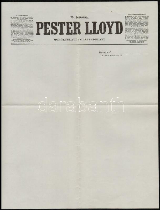 cca 1935 Pester Lloyd használatlan fejléces levélpapírja https://www.darabanth.com/de/318-Fernauktion/318.0/Andere-Sammelgebiete/Drucksachen~29/cca-1935-Pester-Lloyd-hasznalatlan-fejleces-levelpapirja~II1754838