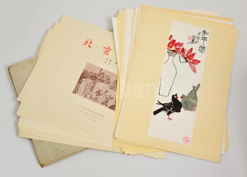Beschreibung: cca 1960 27 db japán metszet dekoratív nagyméretű reprintjét tartalmazó mappa. / Japanese etchings large prints 38x55 cm