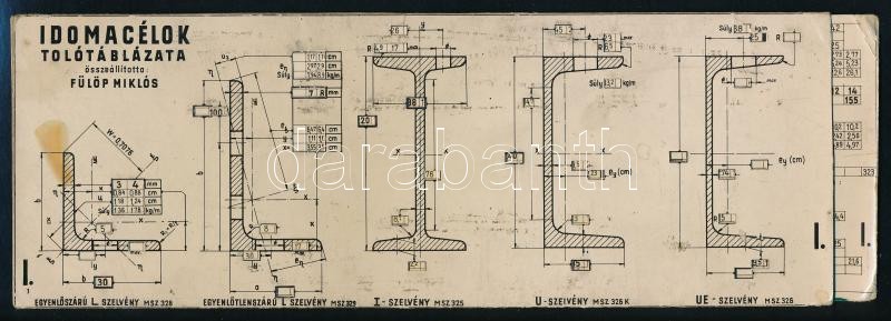 cca 1960 Fülöp Miklós: Idomacélok tolótáblázata, 8x22,5 cm https://www.darabanth.com/de/318-Fernauktion/318.0/Andere-Sammelgebiete/Drucksachen~29/cca-1960-Fulop-Miklos-Idomacelok-tolotablazata-8x22-5-cm~II1736805