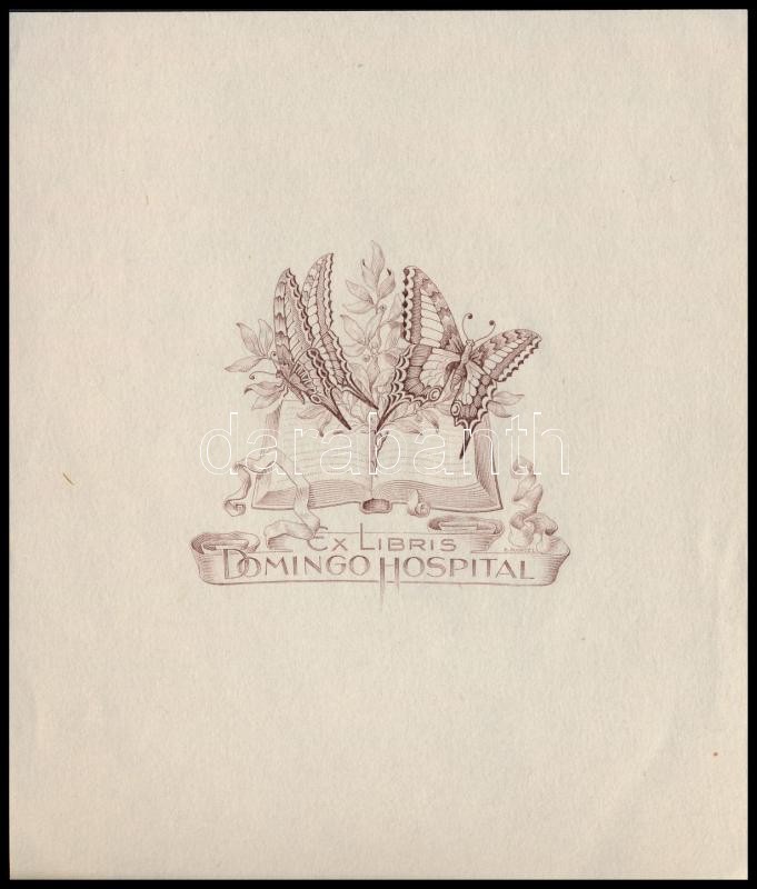 E. Marcel (?-?): Ex libris Domingo Hospital. Klisé, papír, jelzett a n... https://www.darabanth.com/de/318-Fernauktion/318.0/Andere-Sammelgebiete/Ex-libris-Kleingrafik~2/E-Marcel--Ex-libris-Domingo-Hospital-Klise-papir-jelzett-a-nyomaton-5C3976-cm~II1757643