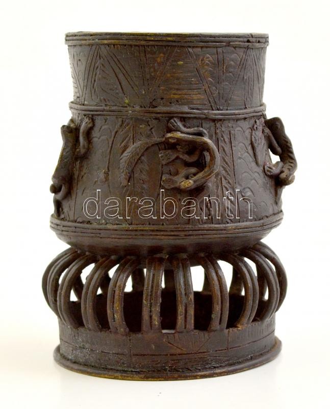 Beschreibung: Gyíkos bronz nigériai(?) váza, kopásokkal, m: 14,5 cm