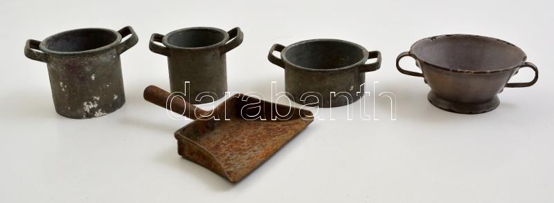 Régi bádog mini serpenyők (5 db), lábasok, stb , 6×7 cm (5×) https://www.darabanth.com/de/318-Fernauktion/318.0/Andere-Sammelgebiete/Flohmarkt~11/Regi-badog-mini-serpenyok-5-db-labasok-stb--6C3977-cm-5C397~II1751333
