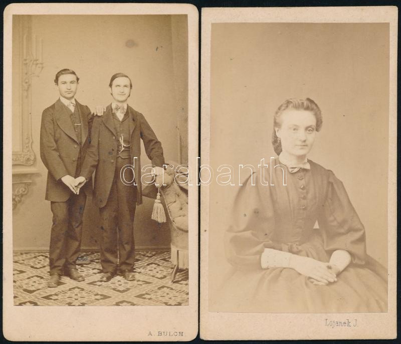 Beschreibung: cca 1862 Lojanek János nagyváradi és Bülch Ágoston pesti műtermében 2 db vizitkártya méretű vintage fénykép, 10,5x6 cm