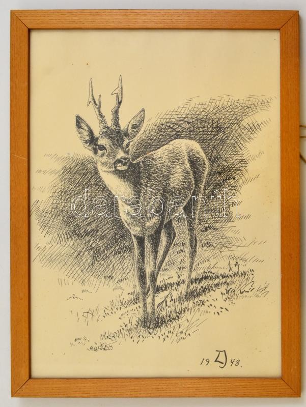 Beschreibung: LJ jelzéssel: Őzbak, tus, papír, üvegezett fa keretben, 34×25 cm