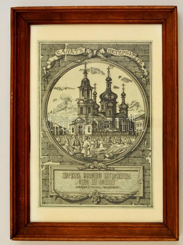 Beschreibung: Olvashatatlan jelzéssel: Az egykori Megváltás-templom, Szentpétervár, rézkarc, papír, üvegezett fa keretben, 24,5×17 cm