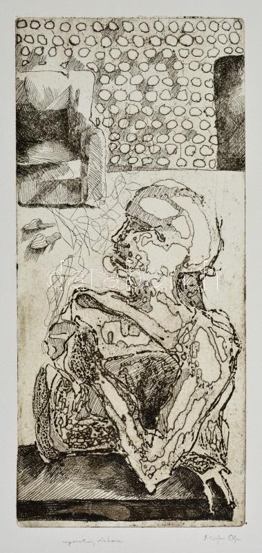 Beschreibung: Olvashatatlan jelzéssel: Gondolkozó ember, rézkarc, papír, 32,5×14 cm