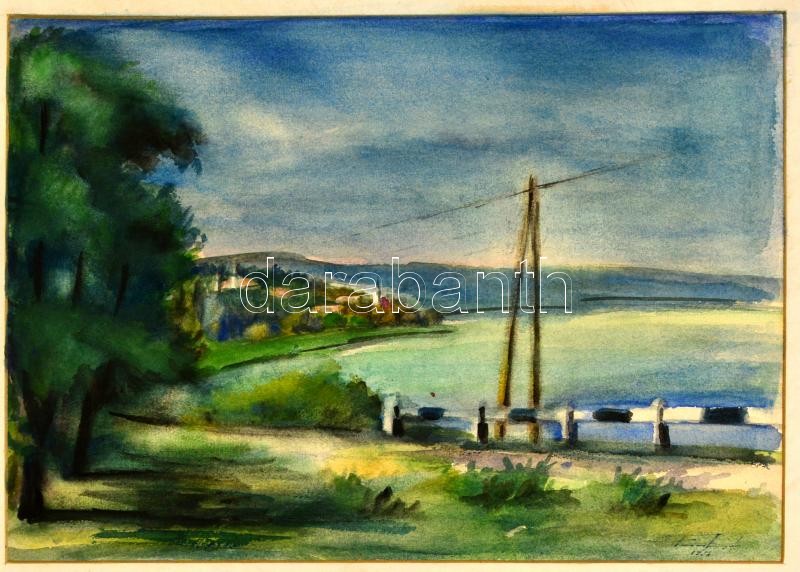 Beschreibung: Olvashatatlan jelzéssel: TIhany, Belső tő, akvarell, papír, paszpartuban, 23×32 cm
