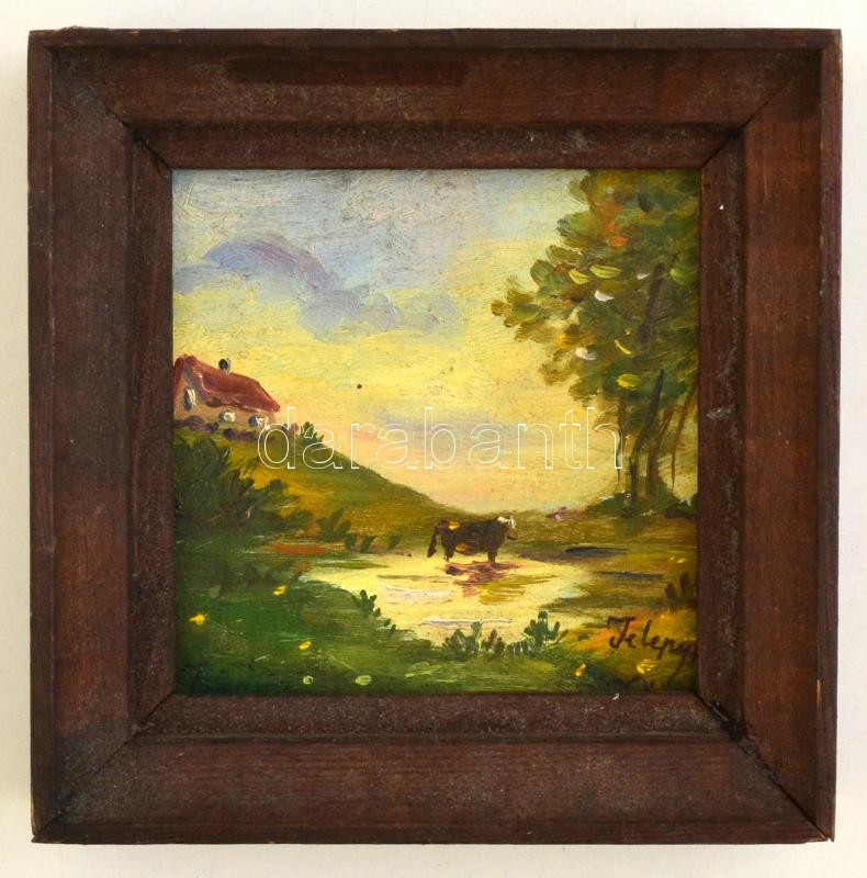 Telepy jelzéssel: Magányos tehén. Olaj, karton, keretben, 9×9 cm https://www.darabanth.com/de/318-Fernauktion/318.0/Andere-Sammelgebiete/Gemalde-und-Grafiken~1/Telepy-jelzessel-Maganyos-tehen-Olaj-karton-keretben-9C3979-cm~II1749765