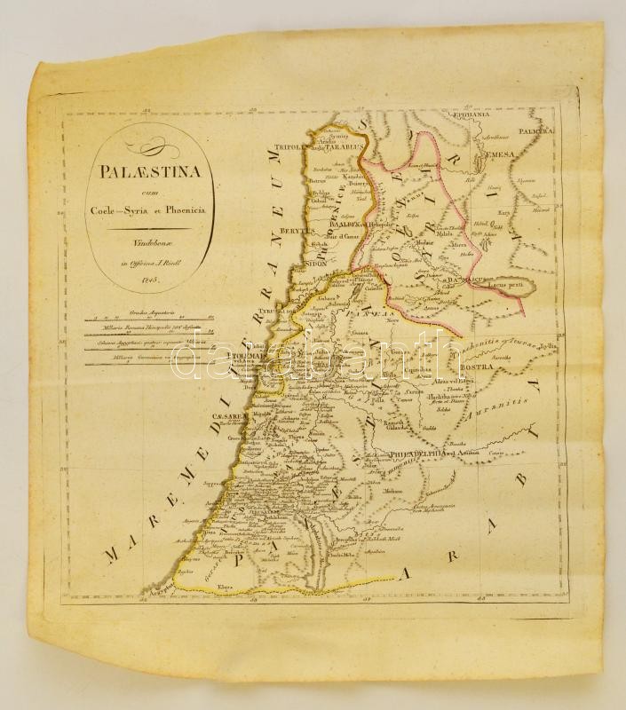 1845 J. Riedl: Palaestina cum Coele - Syria et Phoenicia.- Palesztina ... https://www.darabanth.com/de/318-Fernauktion/318.0/Andere-Sammelgebiete/Landkarten~28/1845-J-Riedl-Palaestina-cum-Coele--Syria-et-Phoenicia-Palesztina-terkepe-Szinezett-rezmets~II1749321