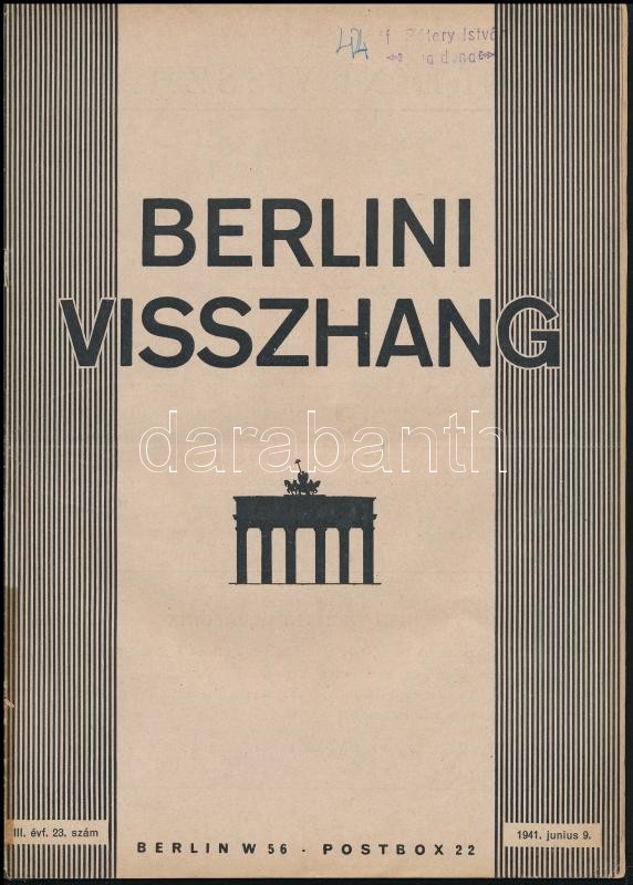1941 Berlini visszhang, III. évf. 23. sz., 1941. junius 9. Leipzig, Au... https://www.darabanth.com/de/318-Fernauktion/318.0/Andere-Sammelgebiete/Militaria~27/1941-Berlini-visszhang-III-evf-23-sz-1941-junius-9-Leipzig-August-Pries-ny-ragasztott-s~II1757049