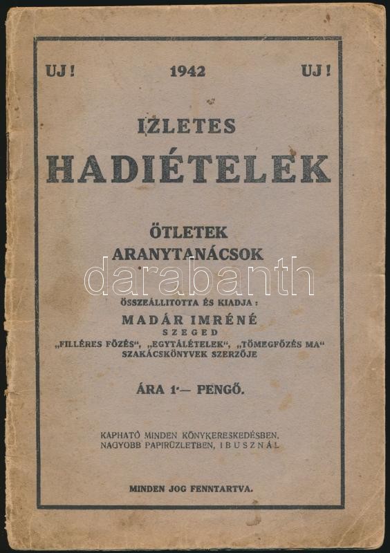1942 Ízletes hadiételek. Ötletek, aranytanácsok. Összeállította és kia... https://www.darabanth.com/de/318-Fernauktion/318.0/Andere-Sammelgebiete/Militaria~27/1942-Izletes-hadietelek-Otletek-aranytanacsok-Osszeallitotta-es-kiadja-Madar-Imrene-~II1748479