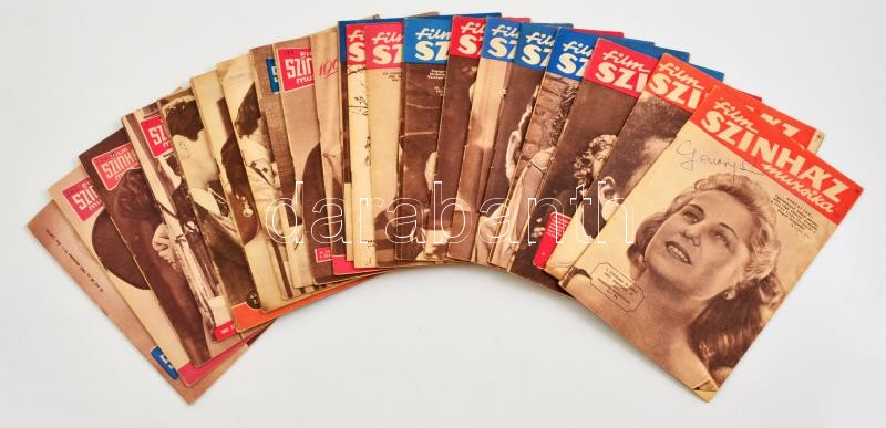 1957-1962 A Film Színház Muzsika c. lap számai, benne számos színész saját képén saját kezű aláírásaival. Gencsy Sári, Frankl Péter, Komlós Juci, Békés Ilona, Nádasy Myrtil, Dalos László, Birkás Lilian, Géczy Dorottya, Sándor Iván.