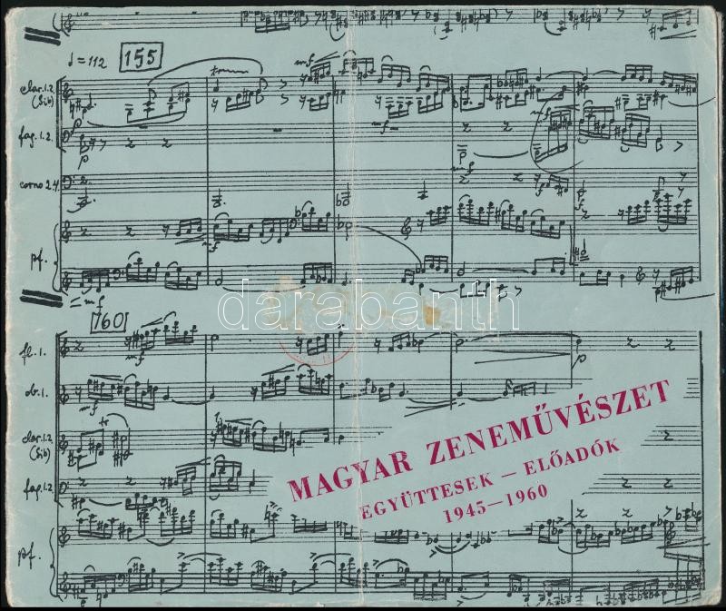 1960 Magyar Zeneművészet. Együttesek - előadók 1945-1960. Országos Filharmónia. Kopottas papírkötésben, hajtásnyommal. Benne 25 db többségében zenészek aláírásával, közte Koródy András (1922-1986) karmester, Antal Imre (1935-2008) zongorista, színész, humorista, Mihály András (1917-1993) zeneszerző, karmester, gordonkaművész, Tátrai Vilmos (1912-1999) hegedűművész, Tusa Erzsébet (1928-2017) zongoraművész és mások aláírásaival.