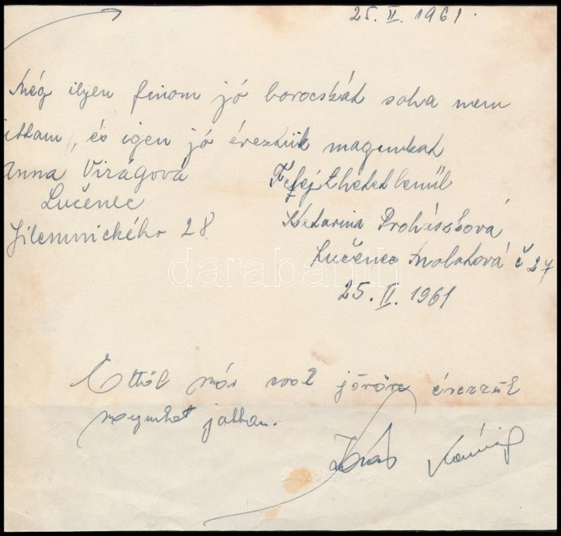 1961-1978 Bessenyei Ferenc színművész ls Erőss Anna rádióbemondó saját... https://www.darabanth.com/de/318-Fernauktion/318.0/Andere-Sammelgebiete/Signatur~18/1961-1978-Bessenyei-Ferenc-szinmuvesz-ls-Eross-Anna-radiobemondo-sajatkezu-irasa-es-ala~II1749605