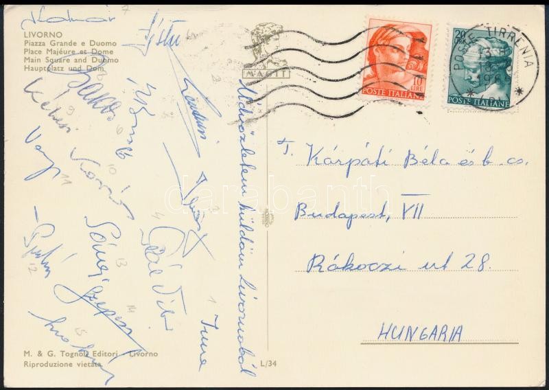 1966 Magyar labdarúgók aláírásai levelezőlapon: Mathesz, Lendvai, Ihás... https://www.darabanth.com/de/318-Fernauktion/318.0/Andere-Sammelgebiete/Signatur~18/1966-Magyar-labdarugok-alairasai-levelezolapon-Mathesz-Lendvai-Ihasz-stb~II1756549