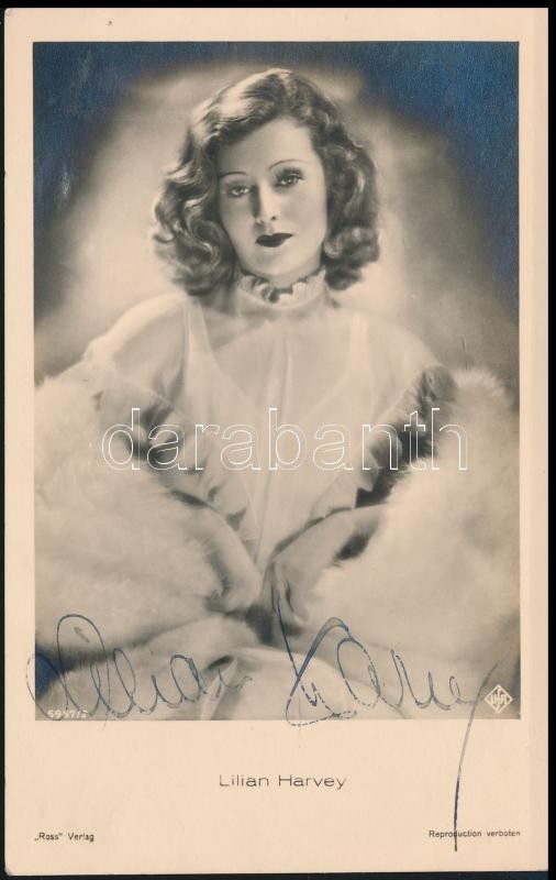 cca 1940 Lilian Harvey (1906-1968) brit-német színésznő saját kezű alá... https://www.darabanth.com/de/318-Fernauktion/318.0/Andere-Sammelgebiete/Signatur~18/cca-1940-Lilian-Harvey-1906-1968-brit-nemet-szineszno-sajat-kezu-alairasa-az-ot-abrazo~II1732901