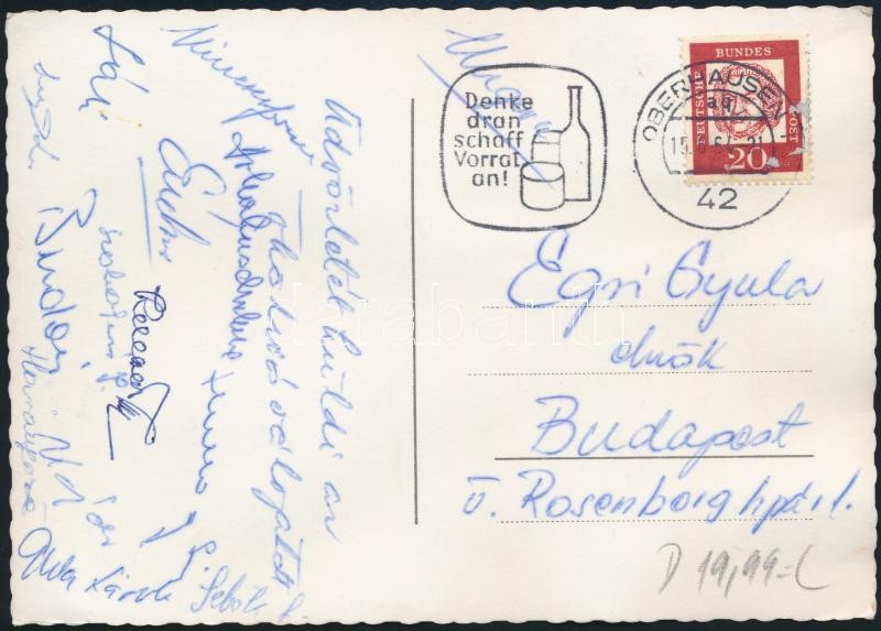 Beschreibung: cca 1960 A magyar ökölvívó válogatott tagjai által aláírt és hazaküldött képeslap / Hungarian boxers
