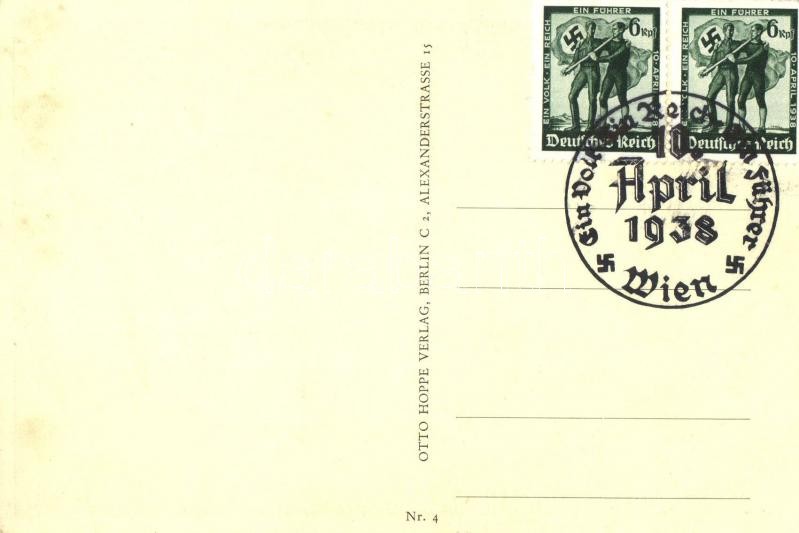 Beschreibung: Unser Führer / Adolf Hitler, NSDAP German Nazi Party propaganda, swastika. Otto Hoppe Verlag + 1938 Ein Volk Ein Reich Ein Führer, Wien So. Stpl.