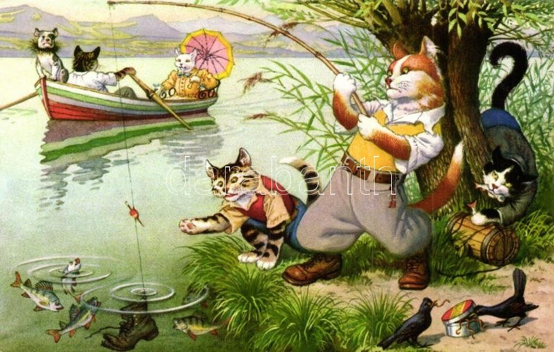 Cats fishing by the lake. Max Künzli No. 4730. - modern postcard https://www.darabanth.com/de/318-Fernauktion/318.0/Ansichtskarten/Katzen~2500071/Cats-fishing-by-the-lake-Max-Kunzli-No-4730--modern-postcard~II1755108