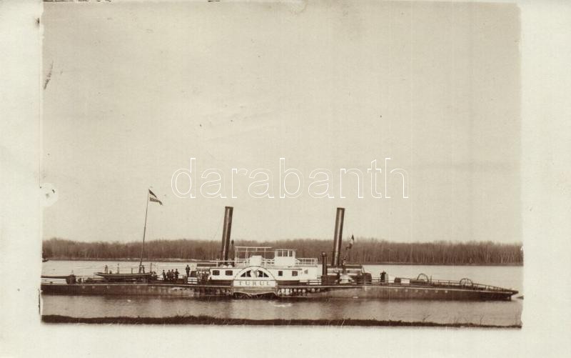 1907 Turul gőzüzemű oldalkerekes vontatóhajó. Képeslap a Turul hajóról feladva az Óbudai hajógyárnak címezve / Hungarian towing steamship. Postcard sent from the ship. photo