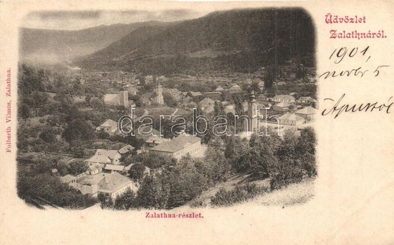 Beschreibung: Zalatna, Zlatna; látkép, templomok. Folberth Vilmos kiadása / general view, churches (vágott / cut)