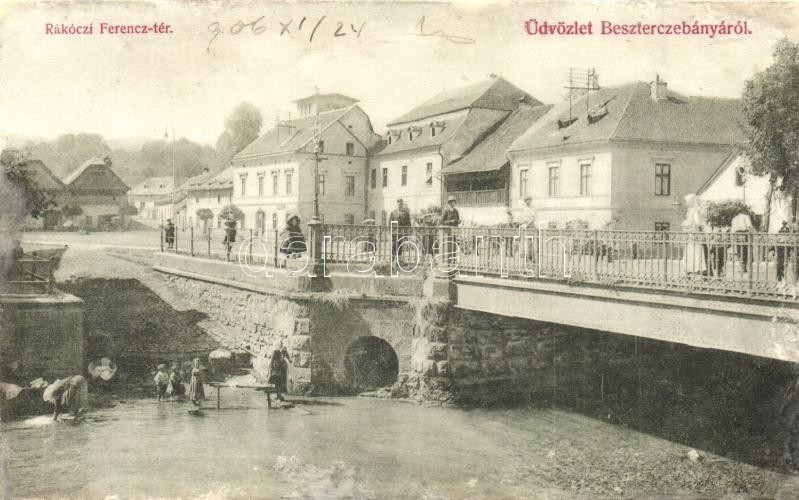 Besztercebánya, Banska Bystrica; Rákóczi Ferenc tér, mosás a folyóban ... https://www.darabanth.com/de/318-Fernauktion/318.0/Ansichtskarten/Slowakei~2500011/Besztercebanya-Banska-Bystrica-Rakoczi-Ferenc-ter-mosas-a-folyoban-a-hid-alatt-square-w~II1754492