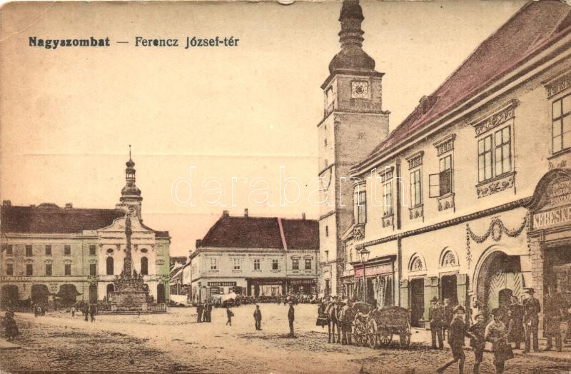Nagyszombat, Tyrnau, Trnava; Ferenc József tér, Bauer Károly és Weisz ... https://www.darabanth.com/de/318-Fernauktion/318.0/Ansichtskarten/Slowakei~2500011/Nagyszombat-Tyrnau-Trnava-Ferenc-Jozsef-ter-Bauer-Karoly-es-Weisz-Adolf-uzlete-square-wit~II1755513