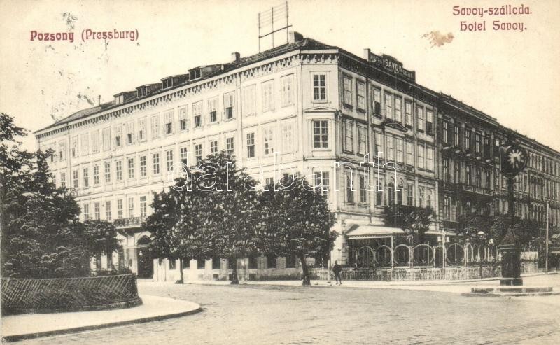 Pozsony, Pressburg, Bratislava; Savoy szálloda / hotel https://www.darabanth.com/de/318-Fernauktion/318.0/Ansichtskarten/Slowakei~2500011/Pozsony-Pressburg-Bratislava-Savoy-szalloda-hotel~II1754007