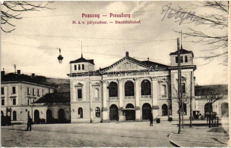 Pozsony, Pressburg, Bratislava; Staatsbahnhof / MÁV pályaudvar, vasútá... https://www.darabanth.com/de/318-Fernauktion/318.0/Ansichtskarten/Slowakei~2500011/Pozsony-Pressburg-Bratislava-Staatsbahnhof-MAV-palyaudvar-vasutallomas-G-L-P-338-r~II1603848