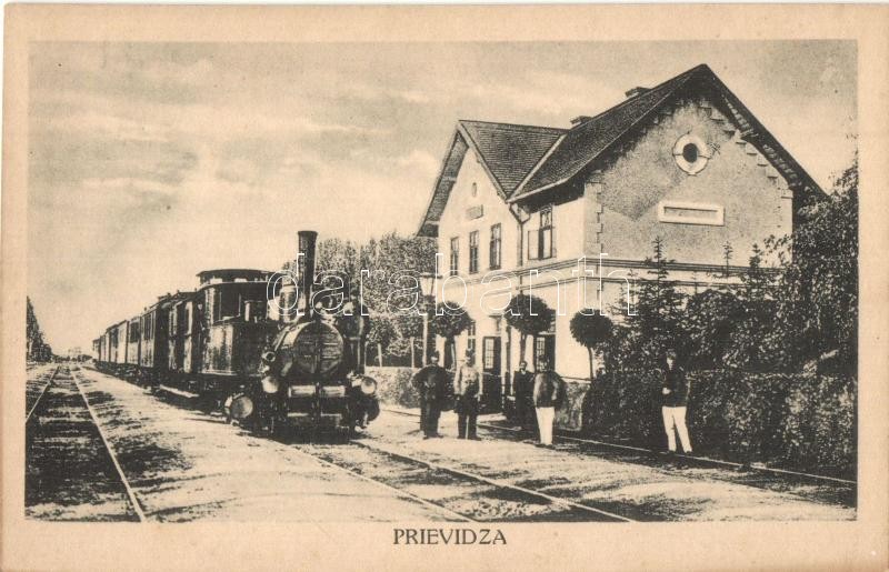 Beschreibung: Privigye, Prievidza; vasútállomás gőzmozdonnyal / Bahnhof / railway station with locomotive