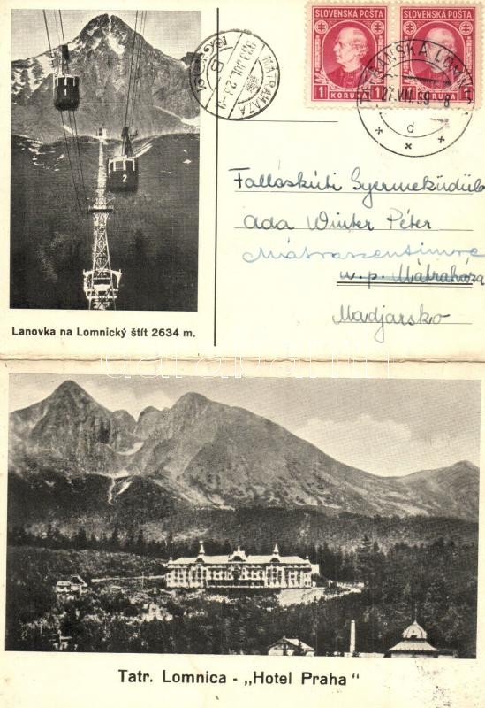 Tátralomnic, Tatranska Lomnica; Prága szálló, felvonó. Kinyitható képe... https://www.darabanth.com/de/318-Fernauktion/318.0/Ansichtskarten/Slowakei~2500011/Tatralomnic-Tatranska-Lomnica-Praga-szallo-felvono-Kinyithato-kepeslap-Hotel-Praha-Lan~II1754932