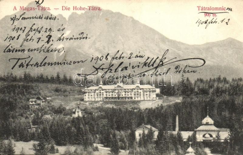 Tátralomnic, Tatranska Lomnica (Tátra); szálloda. Divald Károly 1661-1... https://www.darabanth.com/de/318-Fernauktion/318.0/Ansichtskarten/Slowakei~2500011/Tatralomnic-Tatranska-Lomnica-Tatra-szalloda-Divald-Karoly-1661-1907-hotel~II1756948