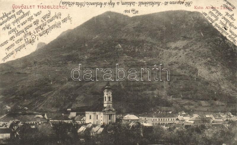 Beschreibung: Tiszolc, Tisovec; látkép, Evangélikus templom. Kohn Albert kiadása / general view, church (EK)