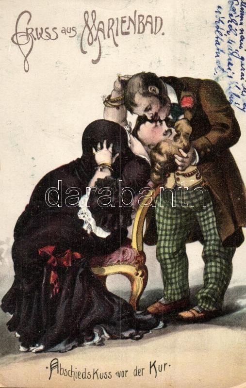 Beschreibung: Marianske Lazne, Marienbad; Abschieds Kuss vor der Kur / Farewell Kiss before the spa. humour