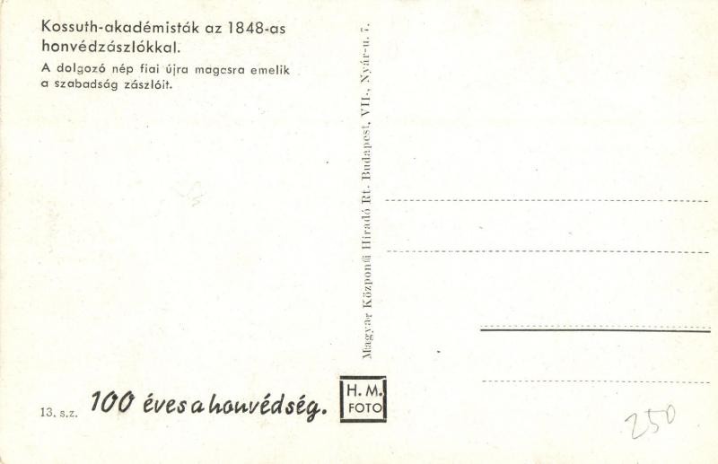 1948 Budapest, Kossuth-akademisták az 1848-as szabadságharci honvédzás... https://www.darabanth.com/de/318-Fernauktion/318.0/Ansichtskarten/Ungarn~2500013/1948-Budapest-Kossuth-akademistak-az-1848-as-szabadsagharci-honvedzaszlokkal-100-eves-a-honv~II1757888