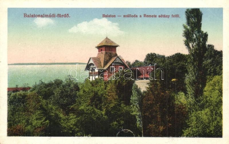 Balatonalmádi, Balaton szálloda a Remete sétány felől. https://www.darabanth.com/de/318-Fernauktion/318.0/Ansichtskarten/Ungarn~2500013/Balatonalmadi-Balaton-szalloda-a-Remete-setany-felol~II1754796