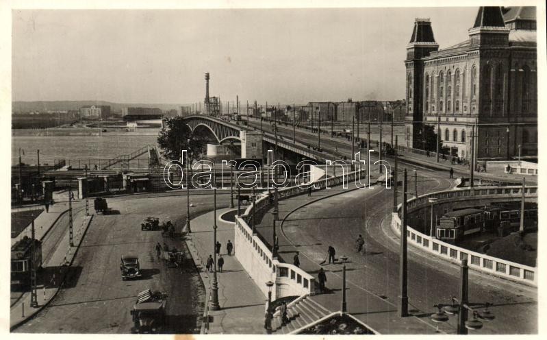 Budapest, Horthy Miklós híd, Elevátor, automobil, villamos, utcaseprő,... https://www.darabanth.com/de/318-Fernauktion/318.0/Ansichtskarten/Ungarn~2500013/Budapest-Horthy-Miklos-hid-Elevator-automobil-villamos-utcasepro-kerekpar~II1755778