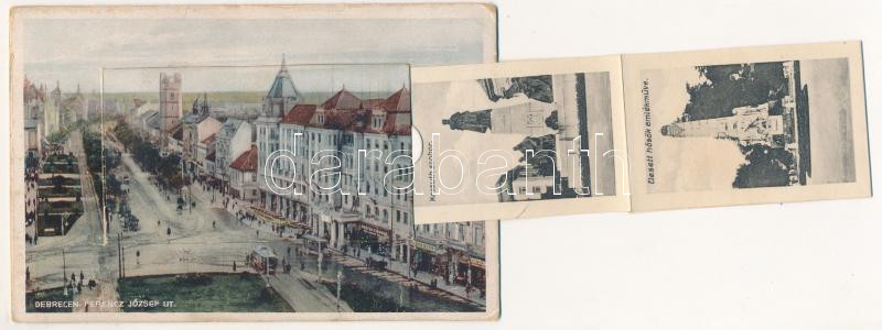 Beschreibung: Debrecen, Ferencz József út, Frank Rezső üzlete, villamos, leporellolap (EK)
