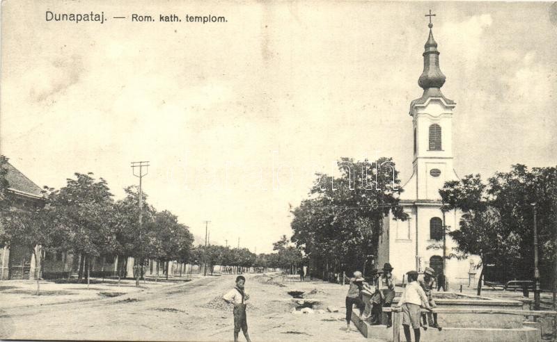 Dunapataj, Római katolikus templom és utcakép. faragó Gergely kiadása https://www.darabanth.com/de/318-Fernauktion/318.0/Ansichtskarten/Ungarn~2500013/Dunapataj-Romai-katolikus-templom-es-utcakep-farago-Gergely-kiadasa~II1754317