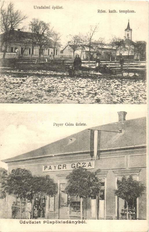 Beschreibung: Püspökladány, Uradalmi épület, Római katolikus templom, Payer Géza üzlete