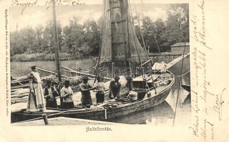 Siófok, Hal felbontása halászat után. Eilinger Ede kiadása (EK) https://www.darabanth.com/de/318-Fernauktion/318.0/Ansichtskarten/Ungarn~2500013/Siofok-Hal-felbontasa-halaszat-utan-Eilinger-Ede-kiadasa-EK~II1678249