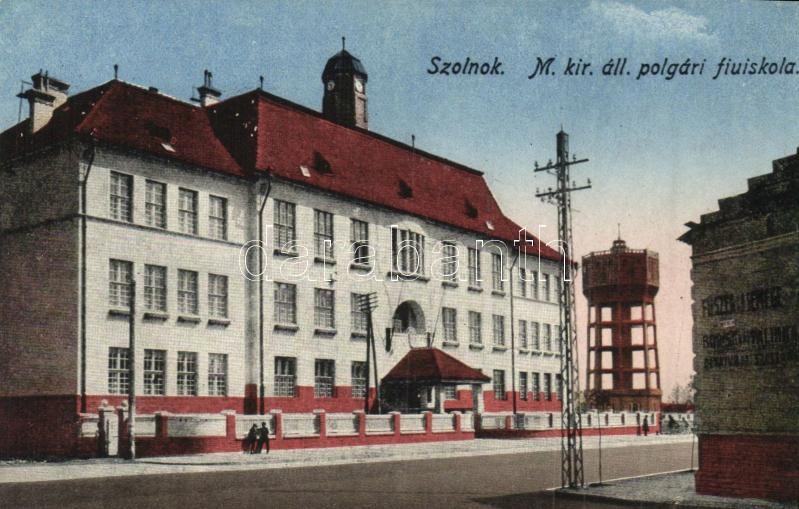 Szolnok, M. kir. állami polgári fiú iskola, Víztorony, üzlet https://www.darabanth.com/de/318-Fernauktion/318.0/Ansichtskarten/Ungarn~2500013/Szolnok-M-kir-allami-polgari-fiu-iskola-Viztorony-uzlet~II1756184