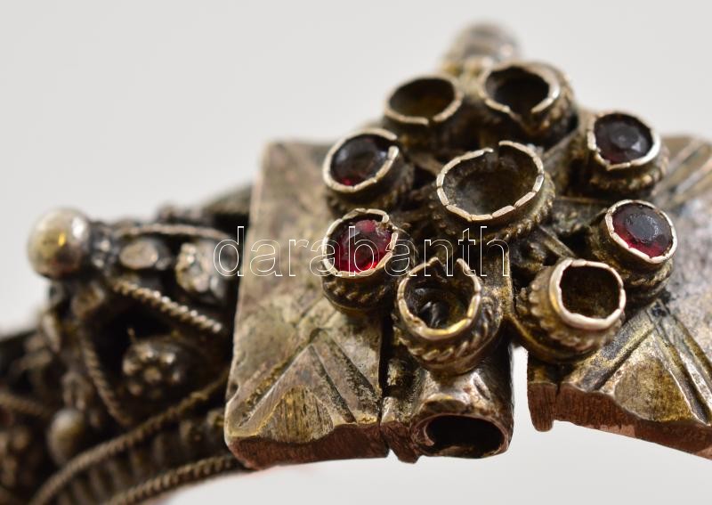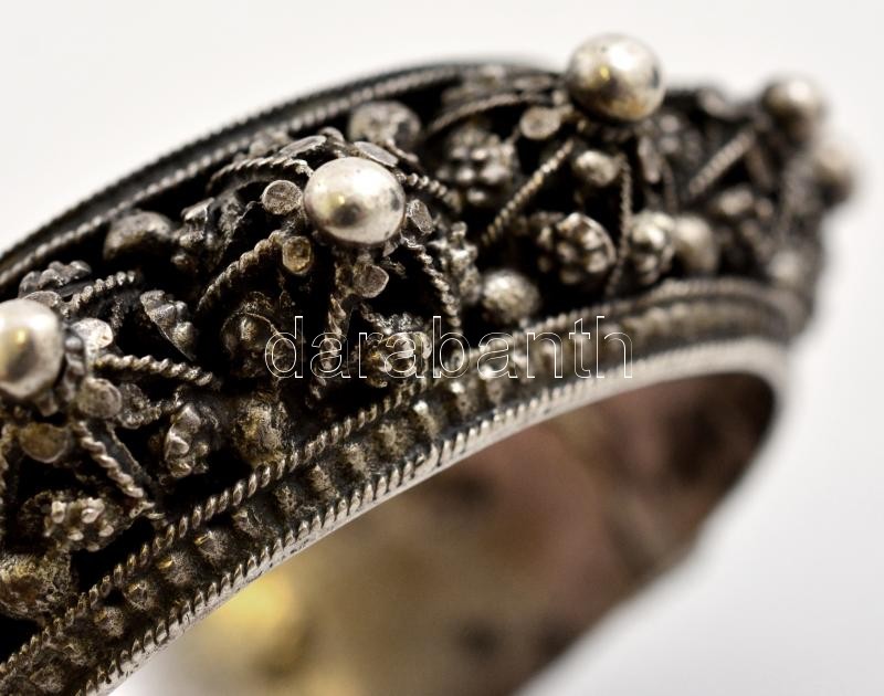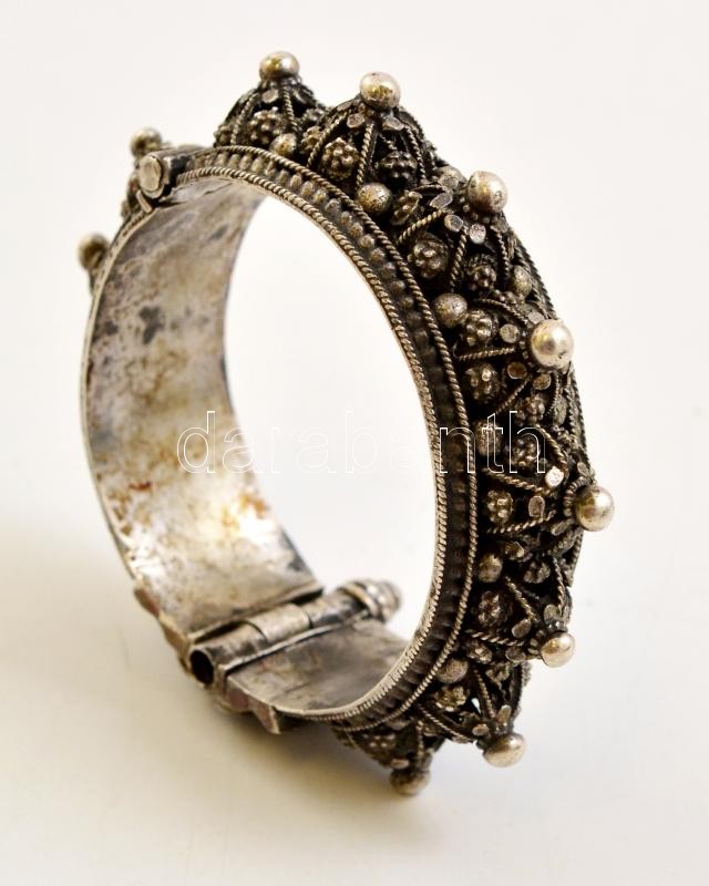 Beschreibung: Ezüst (Ag.) díszes keleti karkötő, jelzés nélkül, hiányos kő berakással, d: 5 cm, nettó 81 g