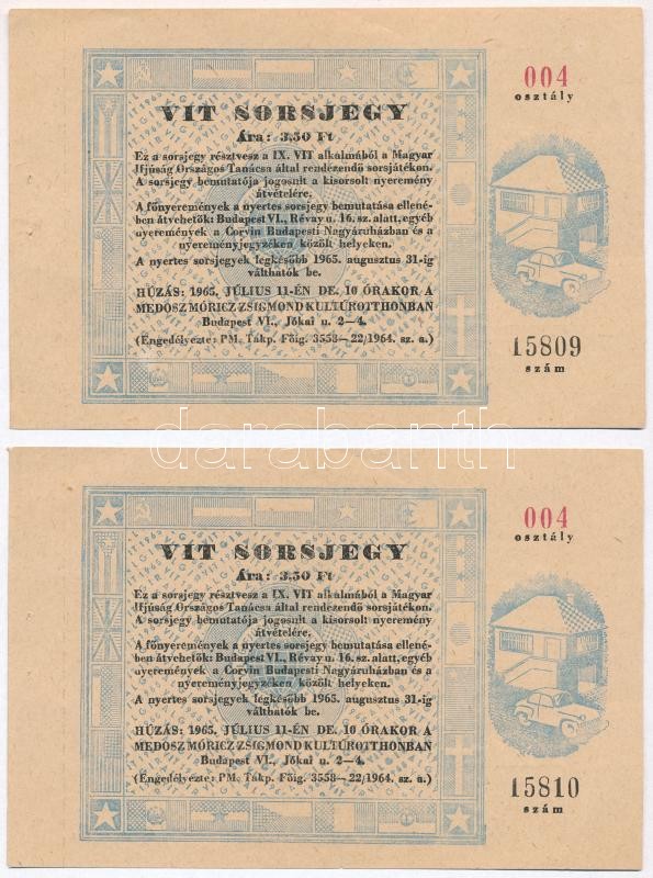 Beschreibung: Budapest 1959. "VIT" sorsjegy 3,5Ft (2x) sorszámkövető T:II-,III